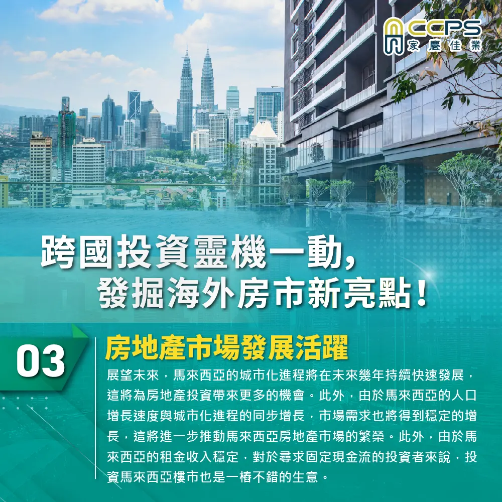 由於馬來西亞的租金收入穩定,對於尋求固定現金流的投資者來說,投資馬來西亞樓市也是一樁不錯的生意。