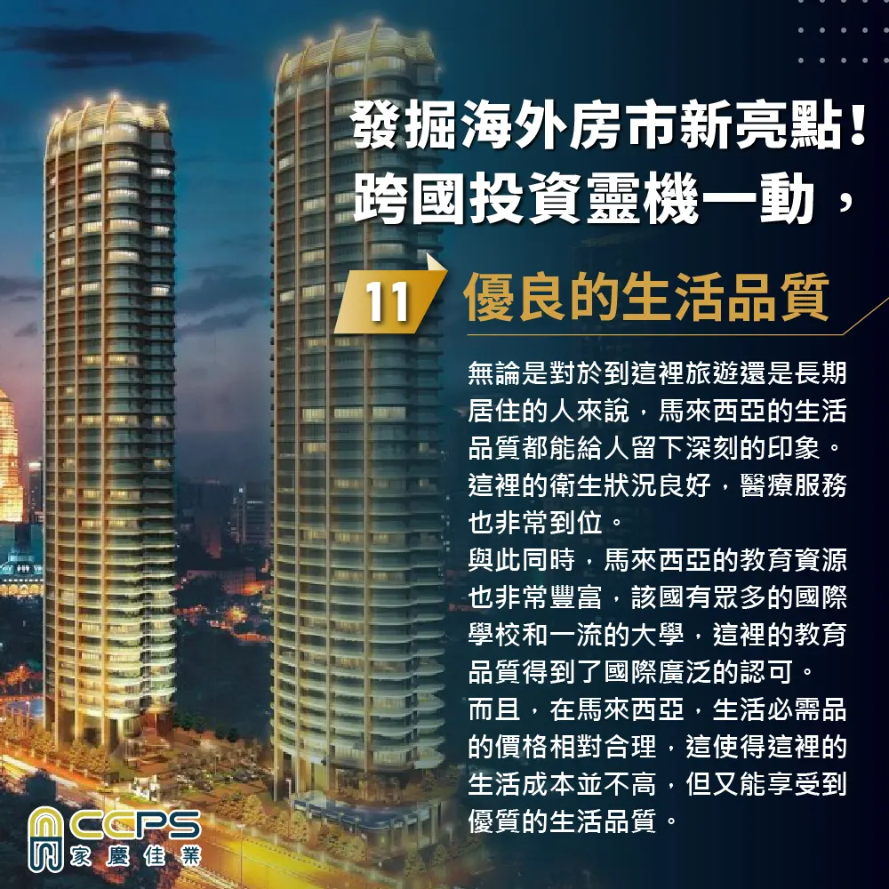 與此同時,馬來西亞的教育資源也非常豐富,該國有眾多的國際學校和一流的大學,這裡的教育品質得到了國際廣泛的認可。而且,在馬來西亞,生活必需品的價格相對合理,這使得這裡的生活成本並不高,但又能享受到優質的生活品質。