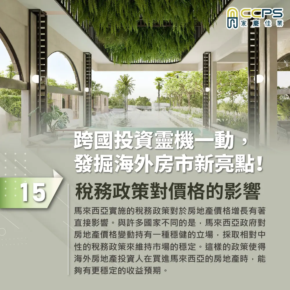 馬來西亞實施的稅務政策對於房地產價格增長有著直接影響。與許多國家不同的是,馬來西亞政府對房地產價格變動持有一種穩健的立場,採取相對中性的稅務政策來維持市場的穩定。這樣的政策使得海外房地產投資人在買進馬來西亞的房地產時,能夠有更穩定的收益預期。