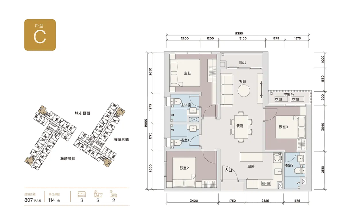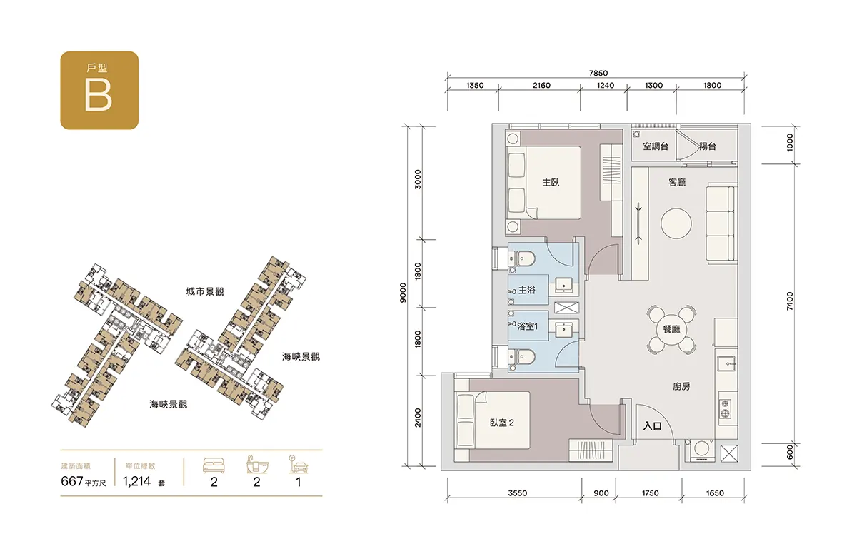 ╱ 單位戶數:A戶型268、B戶型1214、C戶型114