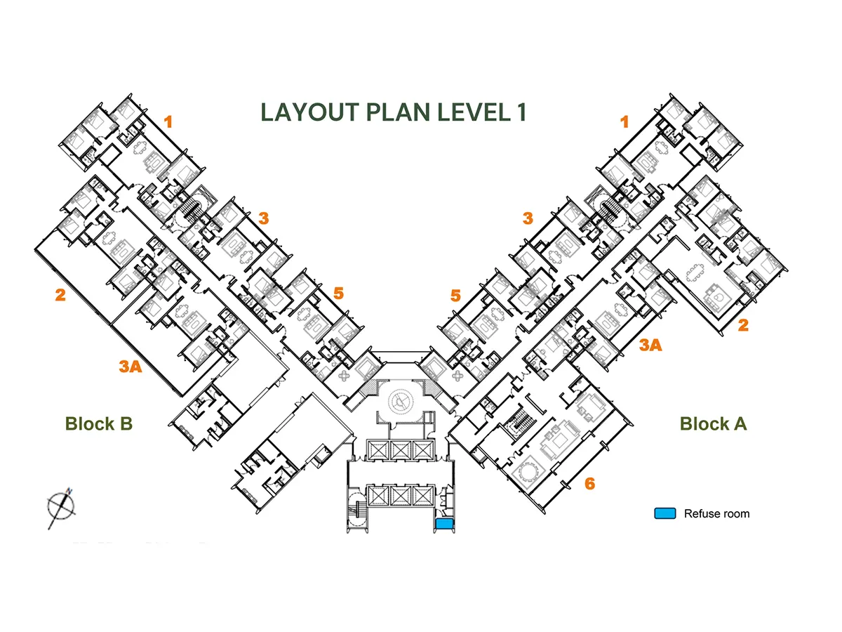 LEVEL 1:平台廣場、花園露臺、凹地草坪、兒童遊樂場、幼兒遊樂場、戶外健身區、日光浴甲板、游泳池、淺水區、按摩浴池、閱讀平台、瑜伽平台、家庭燒烤區、戲水池、水上遊樂設施、戶外淋浴區、小亭子、凹地亭子、冥想空間、慢跑步道、更衣室、蒸汽浴室、洗衣間、商店、公共露台。